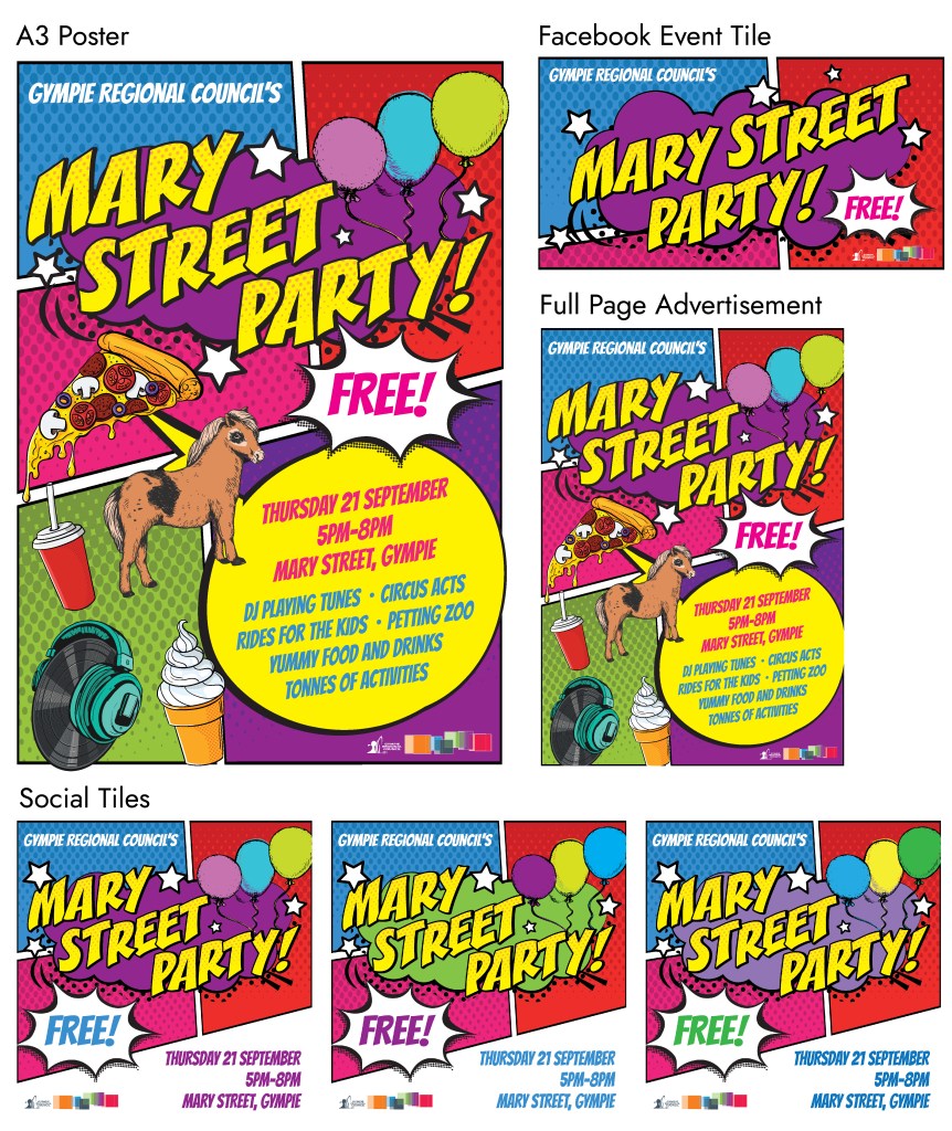 Council hosts and promotes a wide range of events each year, from town-centre activities and regional initiatives to gallery exhibitions. Here is a selection of the marketing collateral I produced for these events.